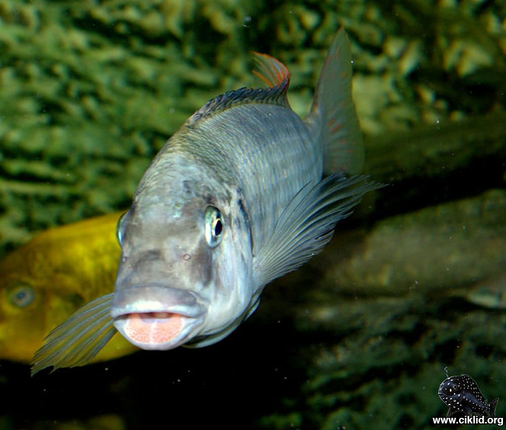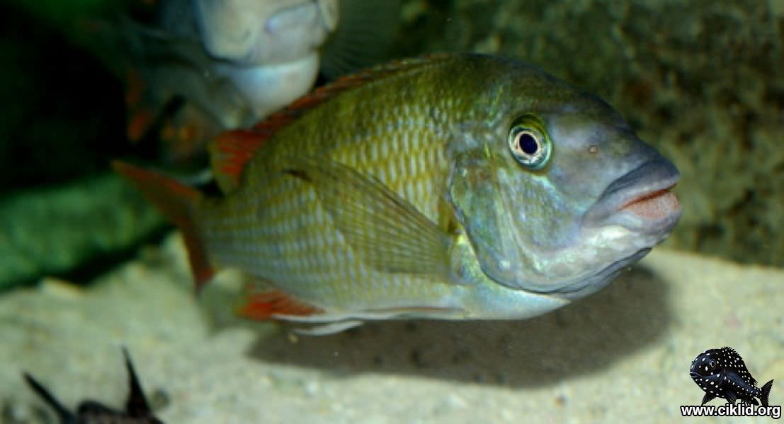 Petrochromis sp. "texas red" återfinns i den grunda klippbiotopen.
