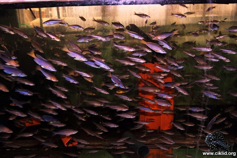 Då arten lever i stora stim i naturen skall man hålla den i stim även i sitt akvarium, ca 10 - 20 st. Arten är livlig och ganska aggressiv, så ett långsträckt akvarium är att föredra - minst 150 cm. Gruppen bör bestå av minst 5 hanar och gärna dubbelt så många honor. Hanarna stakar ut ett tredimensionellt revir som är ca 40 - 50 cm stort. De lockar till sig honorna och de leker i det fria vattnet. Honan tar upp de obefruktade äggen i munnen och snappar därefter efter hanens bukfenor och då passar han på att avge sin mjölke. Honorna simmar sedan tillbaka till de andra honorna där hon ruvar äggen och ynglen tills det blir dags att spotta ut dem. De utspottade ynglen samlas uppe i ett hörn av kvariet. Tyvärr äts en del yngel upp. Vill man få fler yngel flyttas honan till ett “spottakvarium” där hon kan spotta i lugn och ro. En hona kan få upp till 25 yngel. Flera honor kan hållas i samma “spottakvarium”.