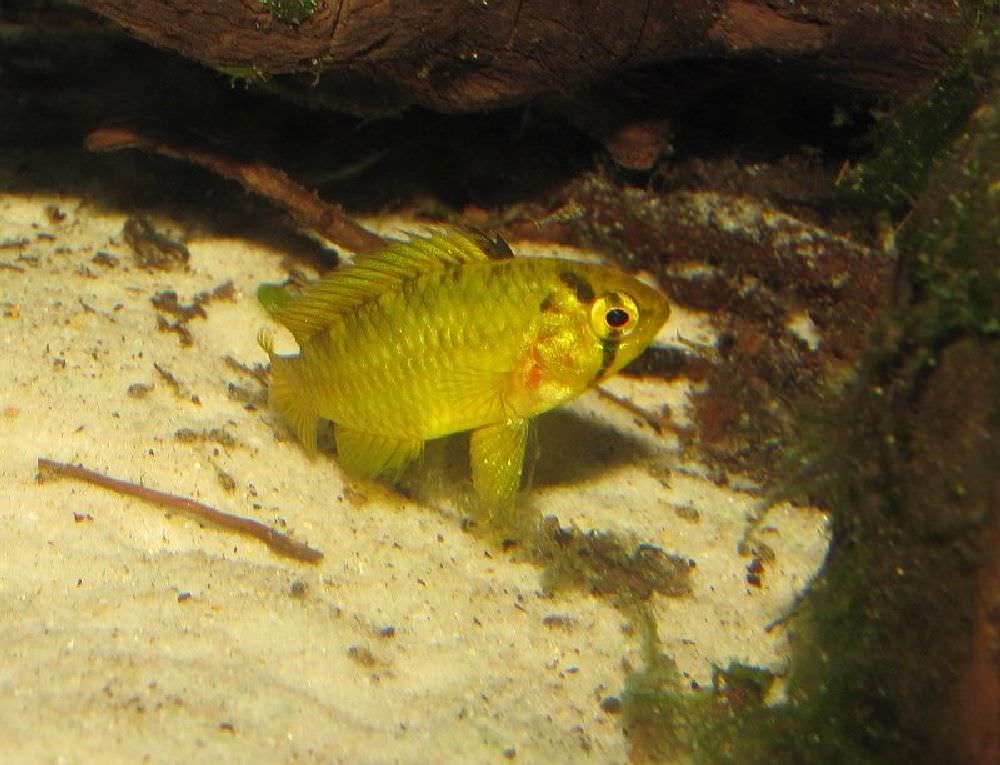 Akvariet ska innehålla stenar, rötter och gärna löv och växter som skapar skydd och gömställen. Det bör finnas minst en grotta per hona. Bottensubstratet kan med fördel vara mörkt och ljuset ska vara svagt (t.ex. dämpat med hjälp av flytväxter) Akvariet behöver inte vara speciellt stort. Ett 60 cm långt akvarium kan rymma ett par. En trio kan rymmas i ett akvarium som är 80 cm långt. Cirkulationen i akvariet ska inte vara alltför stark.