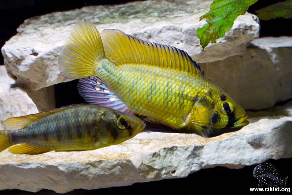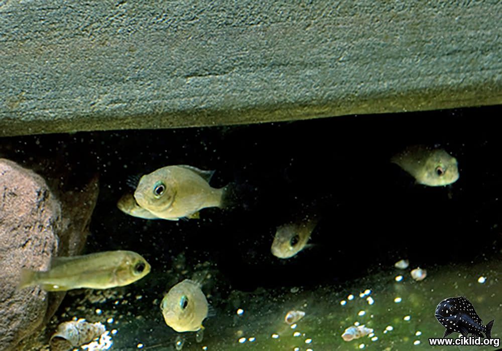 Arten är en maternell munruvare. Leken sker oftast på en platt sten eller i en grop som hanen grävt i bottenmaterialet. Efter att honan lagt äggen plockar hon omedelbart upp dem i munnen för att ruva. Efter leken lämnar honan hanens revir för att söka skydd på en lugnare plats medan hon ruvar äggen tills ynglen är frisimmande. Hanen är polygam och stannar kvar i sitt revir för att försvara det och locka till sig andra honor.