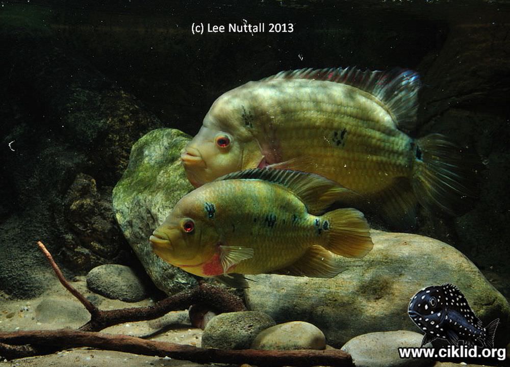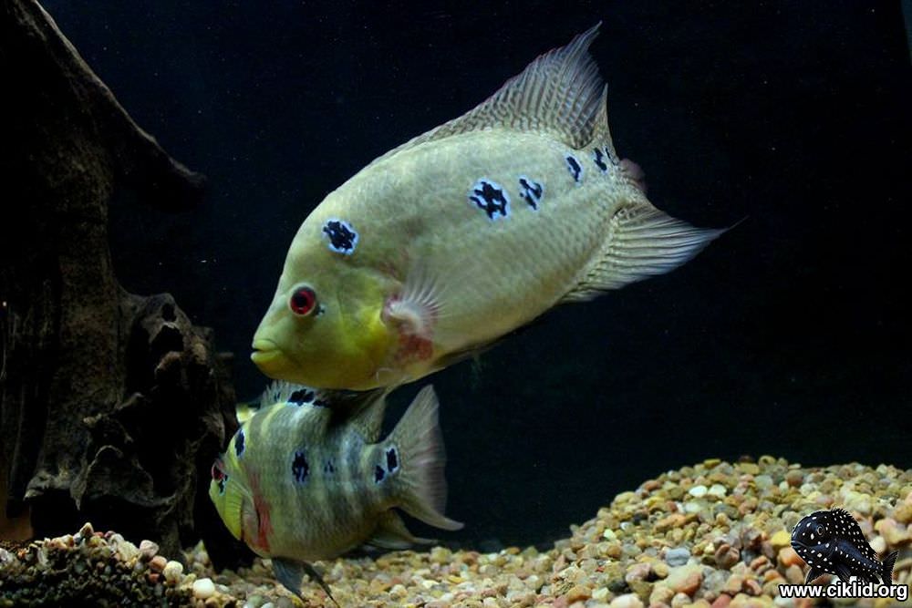- Cichlasoma trimaculatum, Cichlasoma cajali, Cichlasoma centrale, Cichlasoma evermanni, Cichlasoma gordonsmithi, Cichlasoma mojarra, Heros trimaculatus, Astronotus trimaculatus, Parapetenia trimaculata
