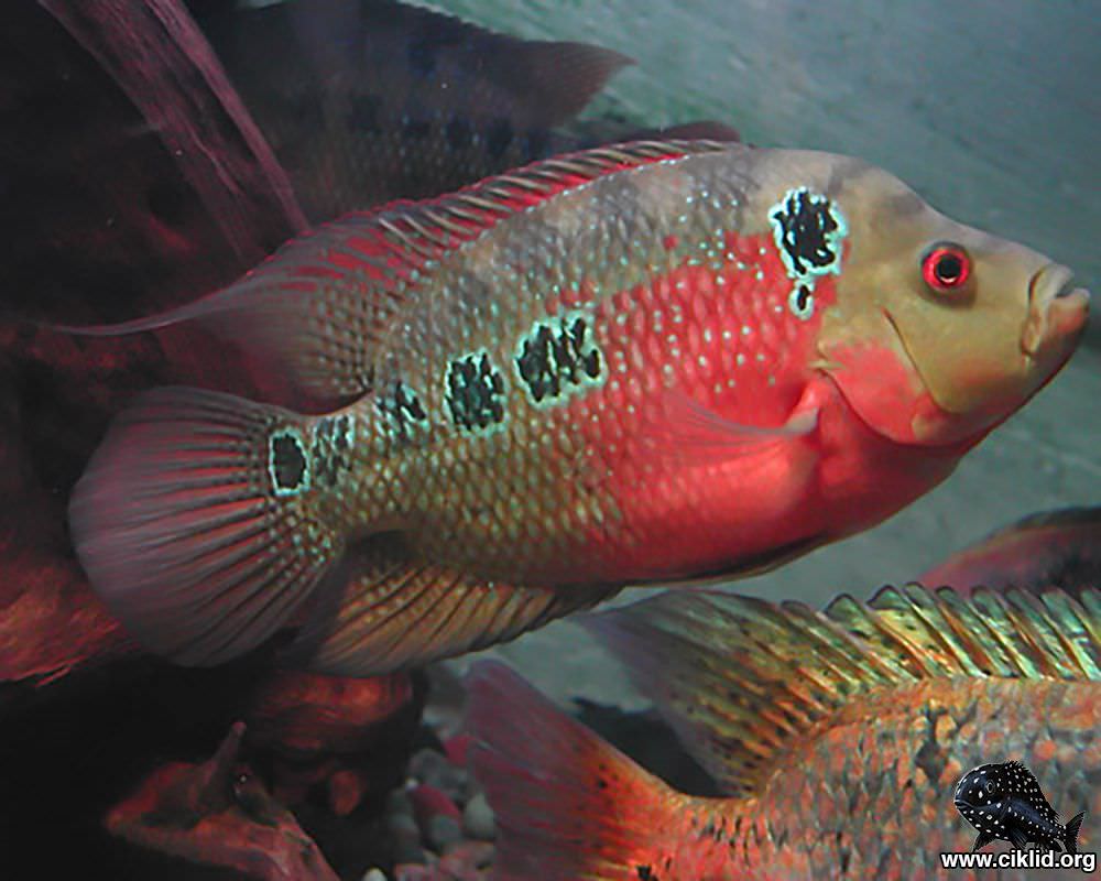- Cichlasoma trimaculatum, Cichlasoma cajali, Cichlasoma centrale, Cichlasoma evermanni, Cichlasoma gordonsmithi, Cichlasoma mojarra, Heros trimaculatus, Astronotus trimaculatus, Parapetenia trimaculata